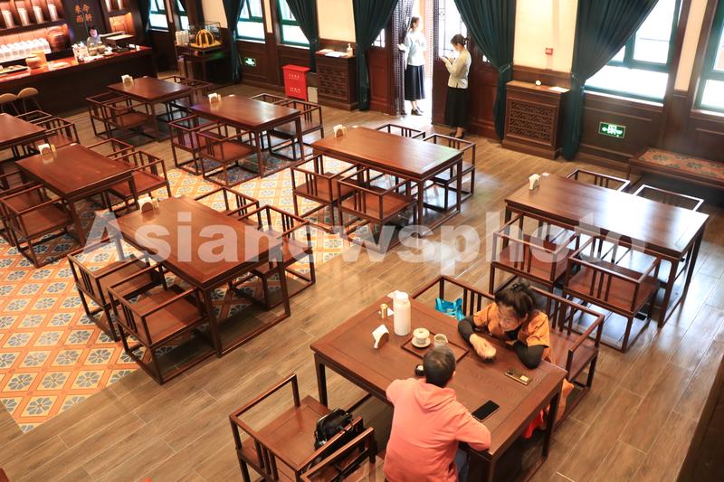 图片说明:2021年6月2日,北京,中山公园来今雨轩还原了茶社经营服务。