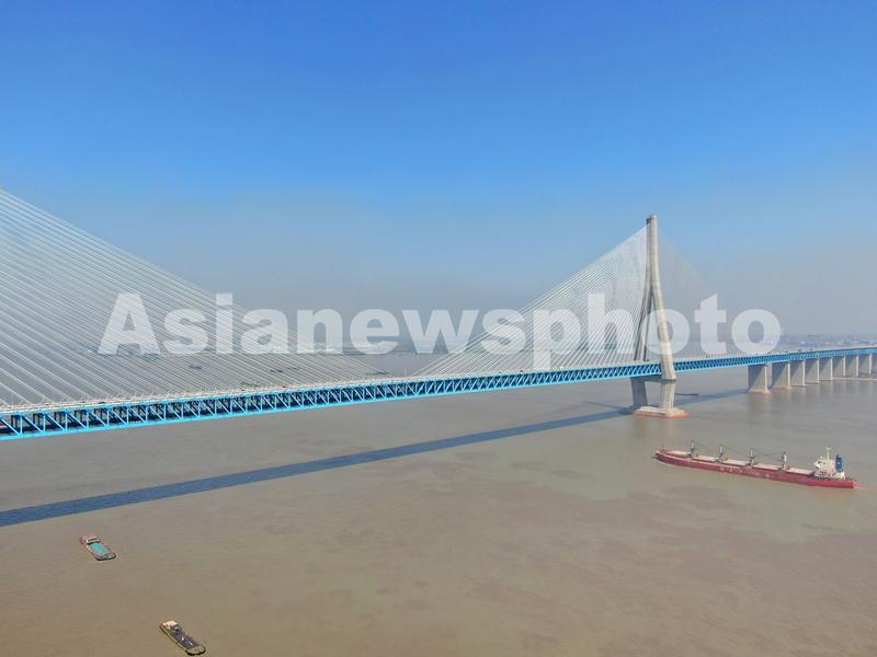 2021年5月30日拍摄的沪苏通长江公铁大桥。