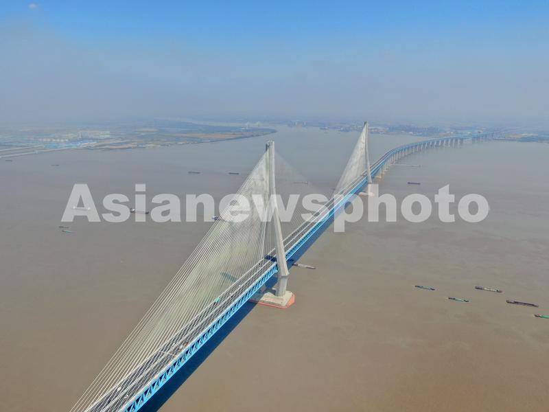 2021年5月30日拍摄的沪苏通长江公铁大桥。