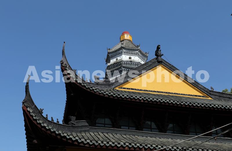 图片说明:5月30日,安徽省安庆市迎江寺振风塔周围架设着脚手架。
