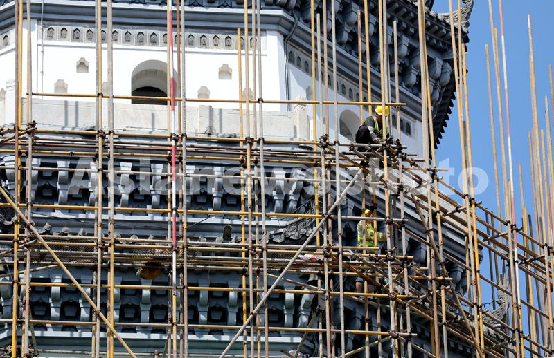 安徽安庆:万里长江第一塔振风塔抢险加固 查看组图