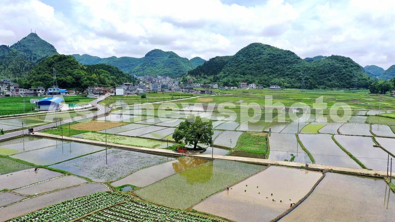 6月2日,贵州省黔西南布依族苗族自治州安龙县春潭街道当朝村如诗如画的田园乡村。