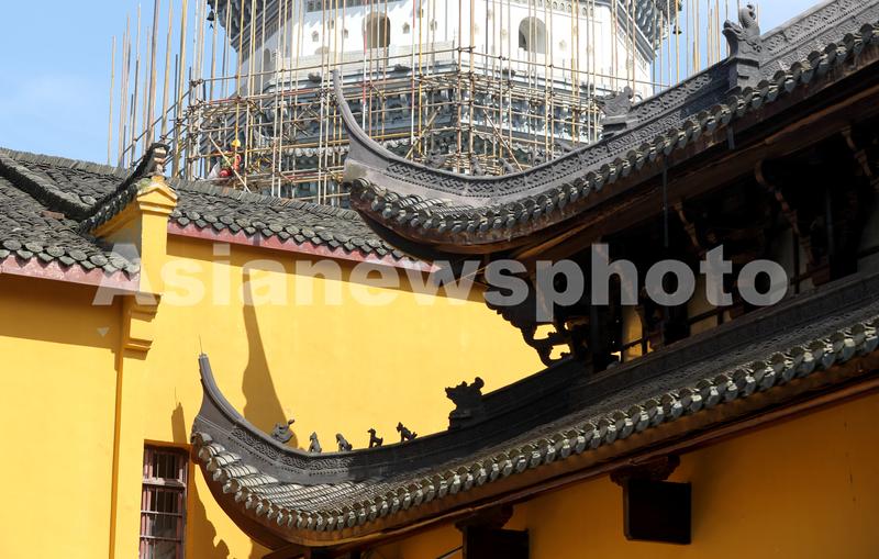 安徽安庆:万里长江第一塔振风塔抢险加固 查看组图