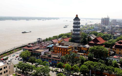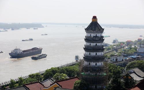 安徽安庆:万里长江第一塔振风塔抢险加固 查看组图