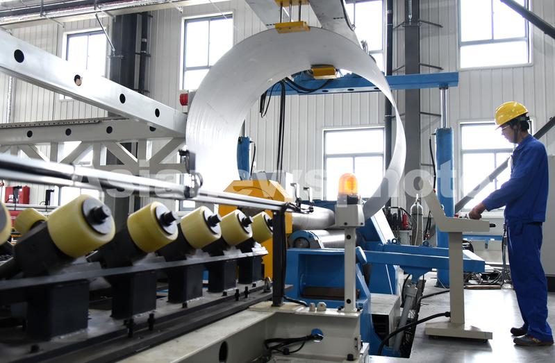 2021年6月2日,位于江苏连云港经济技术开发区的连云港中远海运特种装备制造有限公司生产车间,工人正在安装、调试LNG罐箱智能生产线。正在加紧进行安装和调试的连云港中远海运特装LNG罐箱制造项目总投资12亿元,可年产6000只LNG罐箱,主要用于液化天然气的储存与运输,建成后将是全球第一个LNG罐箱智能化生产工厂,机械自动化程度达80%以上,厂区内零部件的转运、组装、喷涂全都是自动化操作,通过“信息化”系统全面实现管理层面可视化、数据化,最终推动质量、生产、设备等改进,并与经营管理无缝衔接。