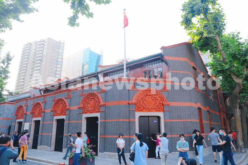 图片说明:2021年6月5日,上海,中共一大会址文创商店外的历史旧址吸引参观者,其石库门造型成为不少文创商品的灵感来源。