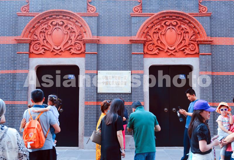 图片说明:2021年6月5日,上海,中共一大会址文创商店外的历史旧址吸引参观者,其石库门造型成为不少文创商品的灵感来源。