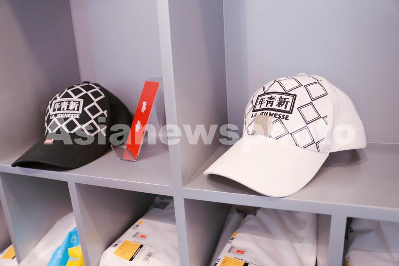 图片说明:2021年6月5日,上海,中共一大会址文创商店内的产品:《新青年》杂志主题帽子。
