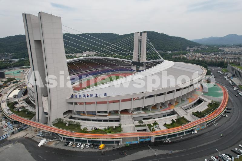 杭州亚运会场馆黄龙体育场提升改造中 查看组图