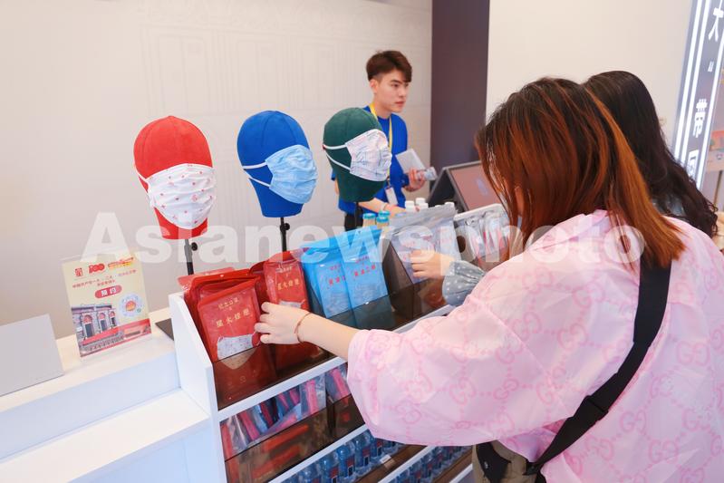 图片说明:2021年6月5日,上海,中共一大会址文创商店内的产品:星火燎原和石库门图案口罩。