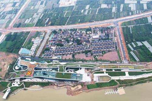 图片说明:2021年6月14日,鸟瞰杭州亚运会北支江水上运动中心。