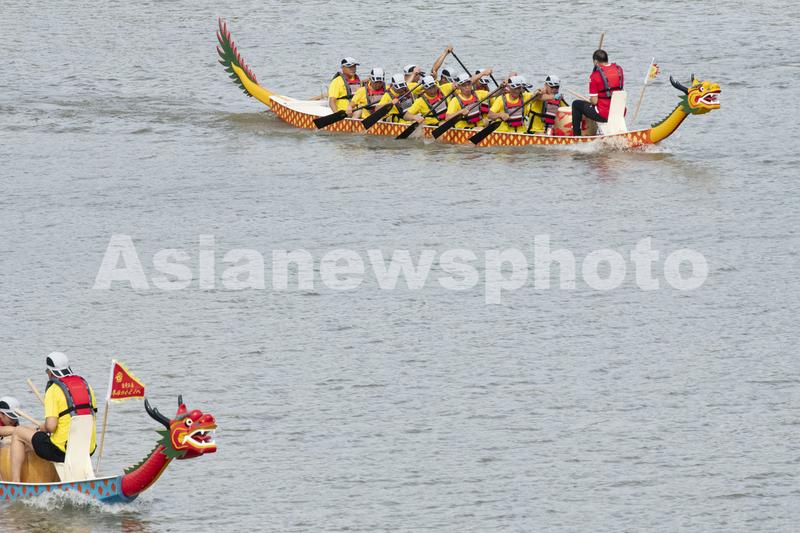 湖北武汉:划龙舟舞手龙庆端午节 查看组图