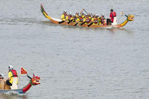 湖北武汉:划龙舟舞手龙庆端午节 查看组图