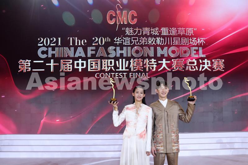 2021年6月12日晚,17号选手何宇帆和28号选手张海博在中国职业模特大赛总决赛上摘得女子组和男子组冠军。