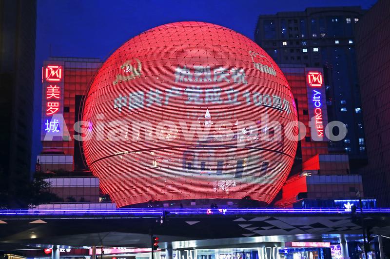 上海:商业地标球形巨屏播建党百年宣传片 查看组图