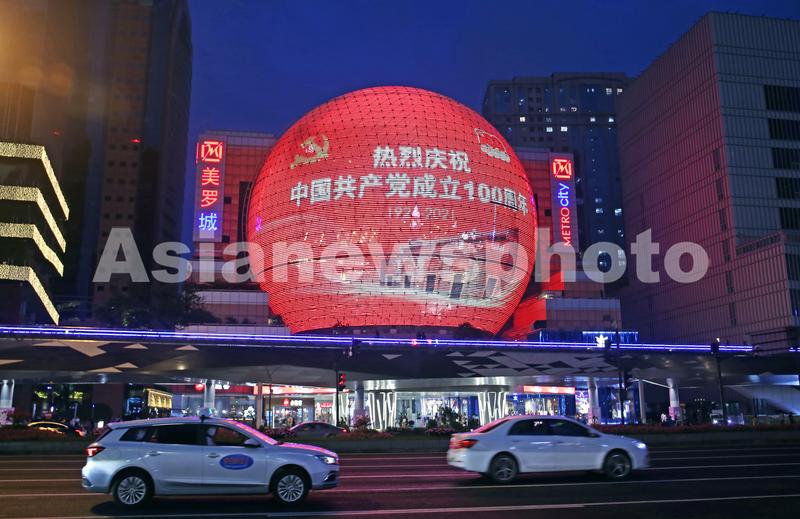 上海:商业地标球形巨屏播建党百年宣传片 查看组图
