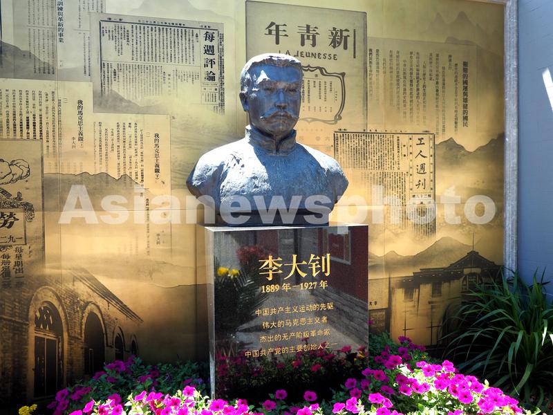 2021年6月18日,北京李大钊故居内的李大钊塑像。