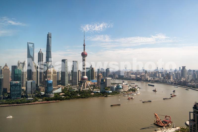 2021年6月21日,上海,在虹口区北外滩白玉兰广场L层登高俯瞰陆家嘴与黄浦江对岸。