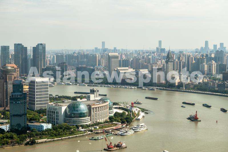 俯拍上海外滩陆家嘴