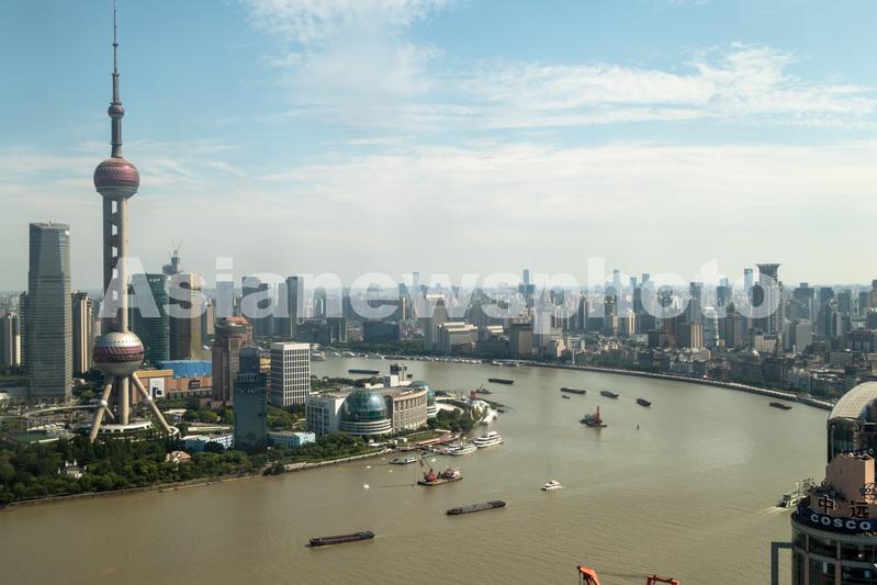 2021年6月21日,上海,在虹口区北外滩白玉兰广场L层登高俯瞰陆家嘴与黄浦江对岸。