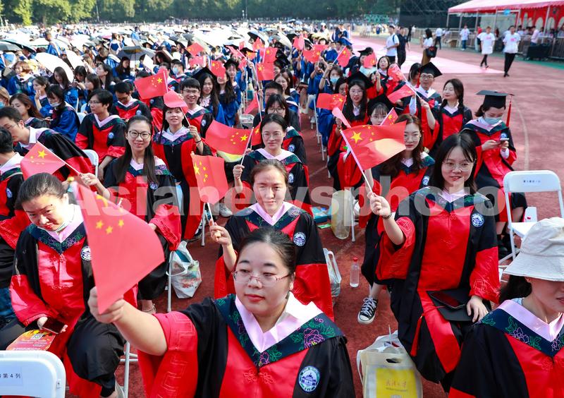 6月23日,武汉大学毕业生在毕业典礼上。