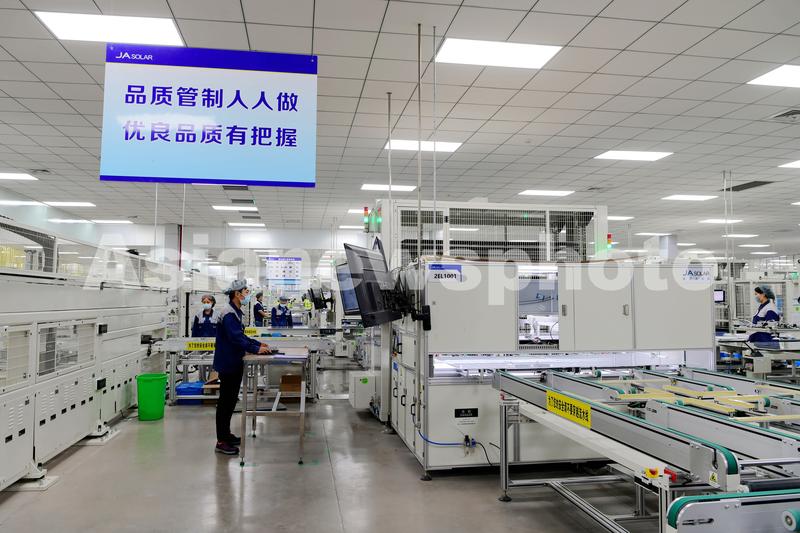 2021年6月22日,浙江省金华市义乌市的义乌晶澳太阳能科技有限公司智造工厂数字化车间里一派繁忙的生产景象,产线工人在各自的岗位上操作自动化设备。