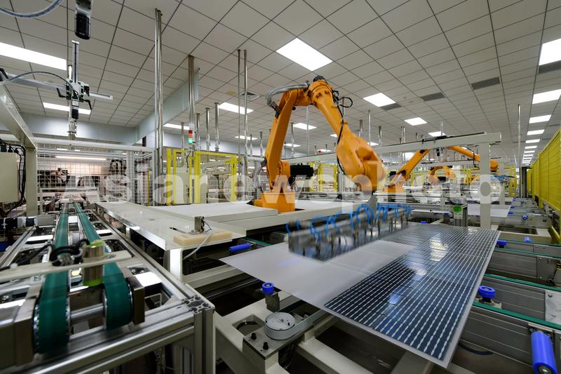 2021年6月22日,浙江义乌,义乌晶澳太阳能科技有限公司智造工厂数字化车间里,自动排版机器人在排版作业。