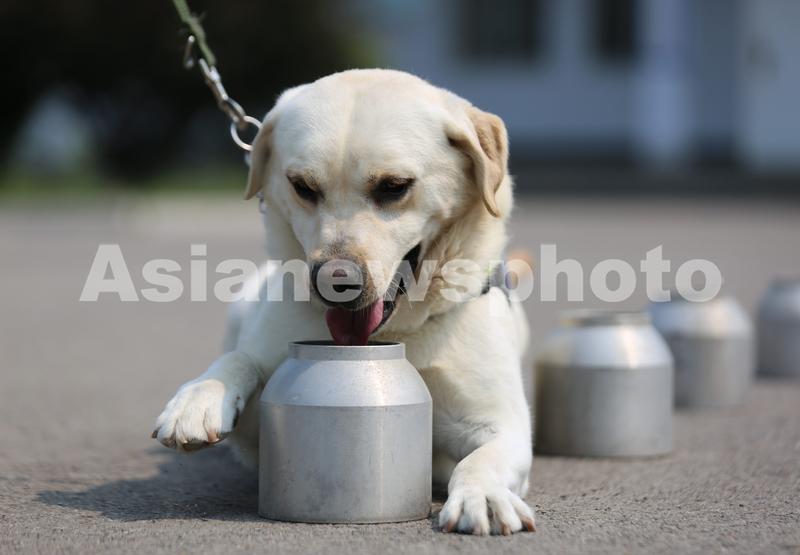 6月23日,在山东省沂南县公安局举办的“缉毒犬开放日”活动上,一只缉毒犬发现藏匿的毒品。