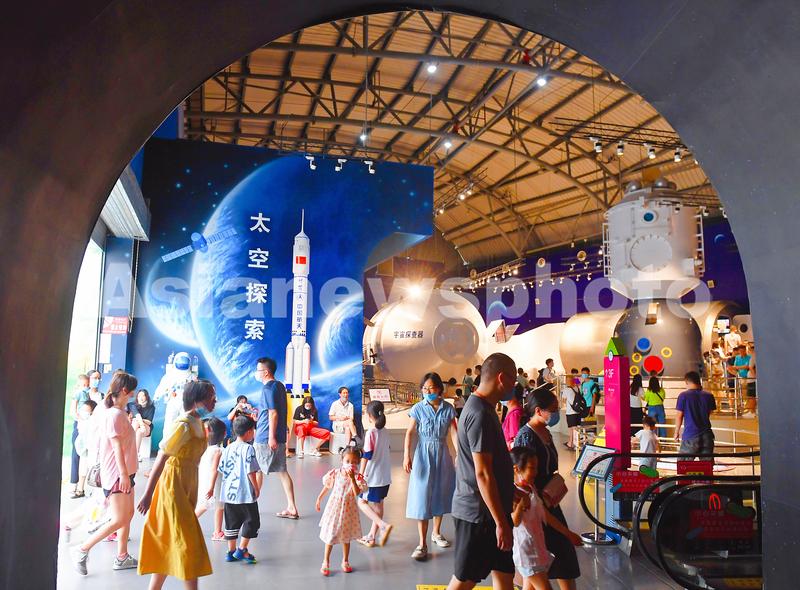 2021年6月27日,湖南长沙,观众在湖南省科技馆太空探索展区参观。