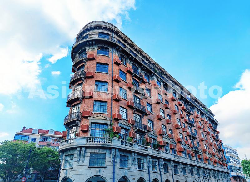 2021年6月28日,上海阴雨暂歇,蓝天白云“点缀”由著名建筑设计师邬达克设计的网红骑楼建筑武康大楼。