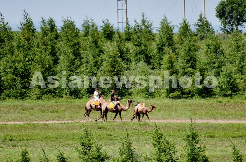 图片说明:2021年7月6日,游客在河北张家口坝上的草原天路游玩。
