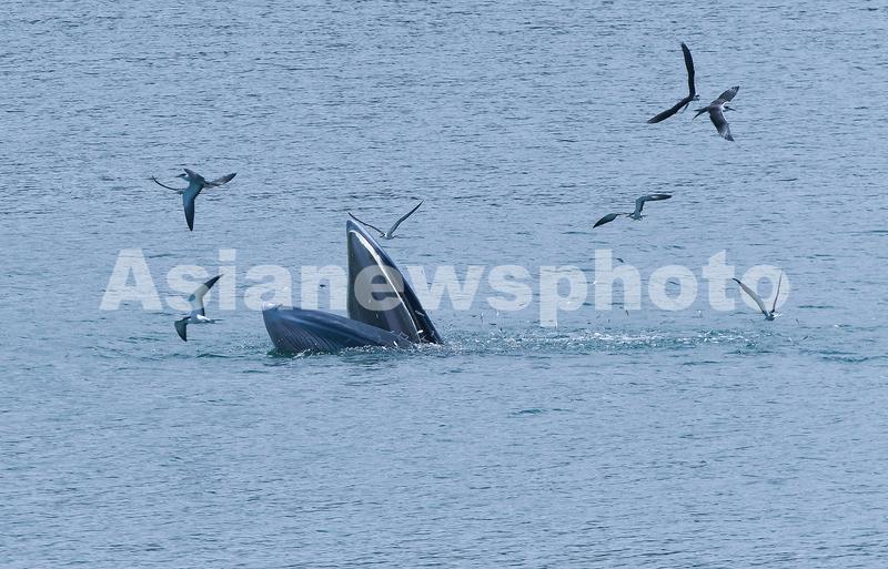 2021年7月4日至5日,深圳大鹏湾海域,一头国家一级保护动物布氏鲸多次浮出水面,张开大嘴捕食,海面上燕鸥云集。据了解,这头长8米左右的布氏鲸6月29日出现在大鹏湾海域并一直在此捕食,目前健康状况良好。深圳市大鹏新区相关部门已加强对相关海域的监测和管理。