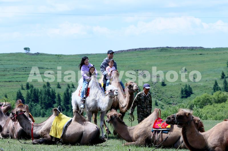 图片说明:2021年7月6日,游客在河北张家口坝上的草原天路游玩。