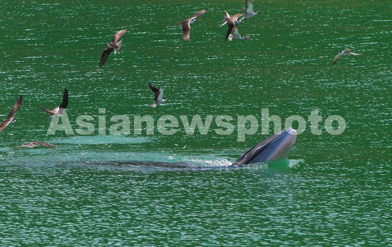 2021年7月4日至5日,深圳大鹏湾海域,一头国家一级保护动物布氏鲸多次浮出水面,张开大嘴捕食,海面上燕鸥云集。据了解,这头长8米左右的布氏鲸6月29日出现在大鹏湾海域并一直在此捕食,目前健康状况良好。深圳市大鹏新区相关部门已加强对相关海域的监测和管理。