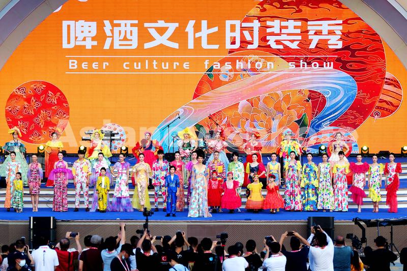 2021年7月18日,山东青岛西海岸新区金沙滩啤酒城,市民和游客在观看啤酒文化时装秀。
