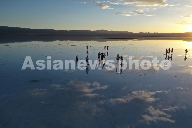 图片说明:2021年7月17日,游客在青海茶卡盐湖观光。