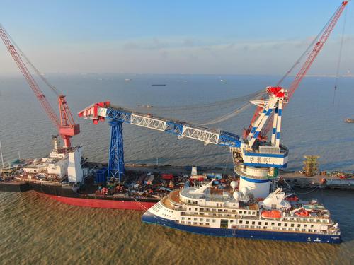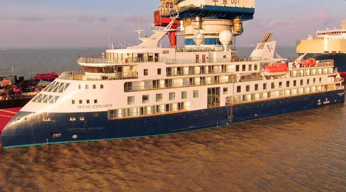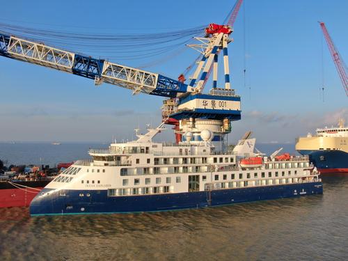 图片说明:2021年7月18日,在招商工业江苏海门基地拍摄的极地探险邮轮4号船“海洋探险号”。