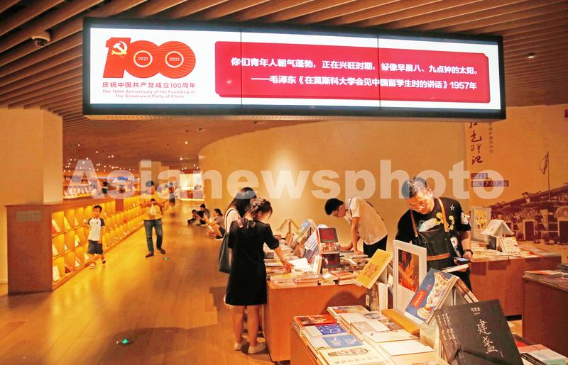 2021年7月17日,上海,日本建筑大师安藤忠雄设计的新华书店“光的空间”受到关注,尤其是暑期学子,有的是家长带孩子来购书、还有很多大中学生独自安静坐在一隅,书店内还布置了历年戴森设计大奖获奖作品展览,“寻找下一代发明家”的标语十分吸引眼球。“光的空间”大厅独具设计感的环形书柜和多层格局,顶部星空LED灯配以暖黄色调的灯光,充满艺术感和视觉享受,除了让读者享受读书乐趣,还吸引众多文艺青年打卡。