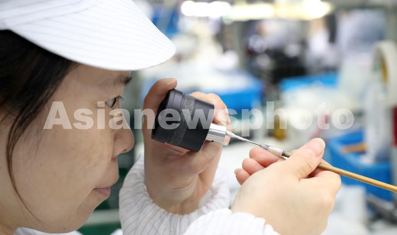 7月20日,工人在江苏省南通市崇川区永兴街道辖区规上企业山姆电器组装车间忙碌,该企业生产的瞄准镜等产品出口德国、美国等欧美国家。