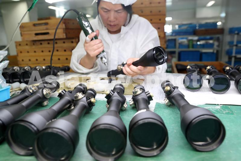 7月20日,工人在江苏省南通市崇川区永兴街道辖区规上企业山姆电器组装车间忙碌,该企业生产的瞄准镜等产品出口德国、美国等欧美国家。
