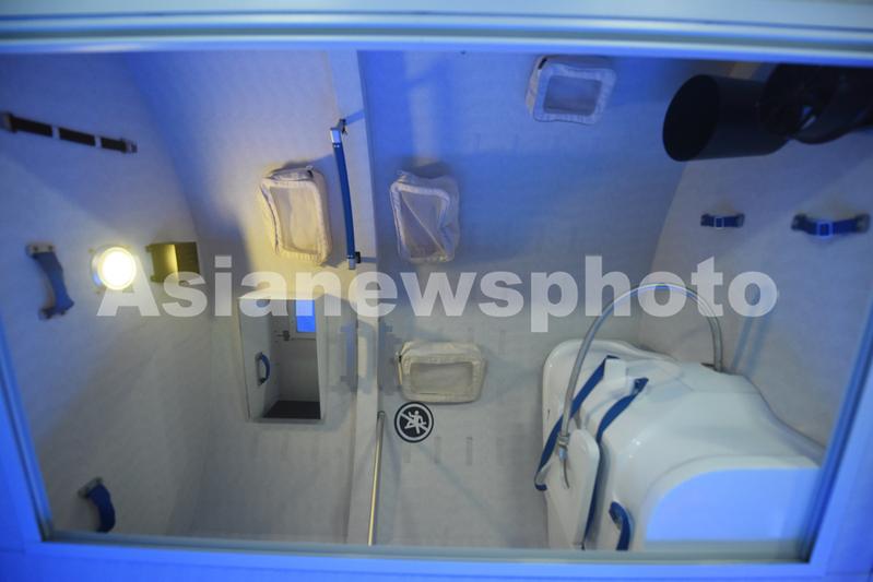 图片说明:2021年7月18日,在上海天文馆拍摄到的“天和号核心舱”的“太空卫生间”。