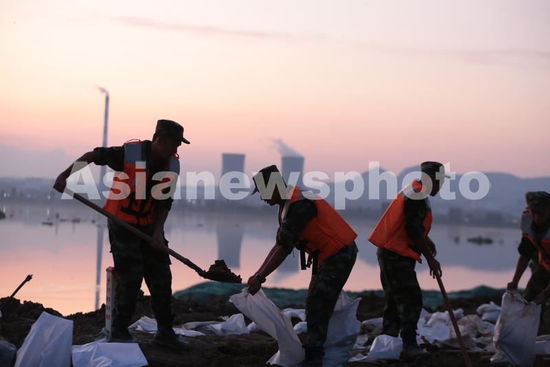 图片说明:7月24日晚,武警官兵搬运砂石封堵决口。