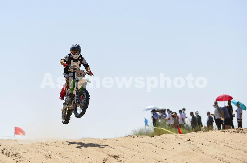 2021年7月31日,车手驾驶摩托车在沙漠汽车摩托车挑战赛场地赛比赛中。