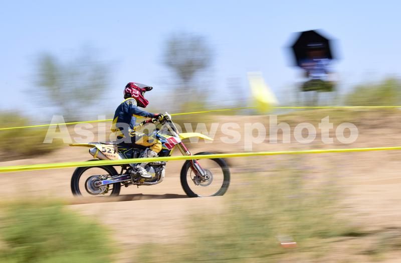 2021年7月31日,车手驾驶摩托车在沙漠汽车摩托车挑战赛场地赛比赛中。