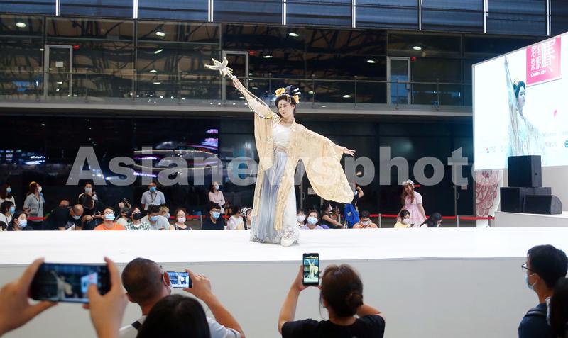 2021年7月30日,上海,汉服模特在ChinaJoy特设的T台走秀。
