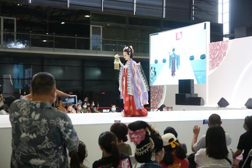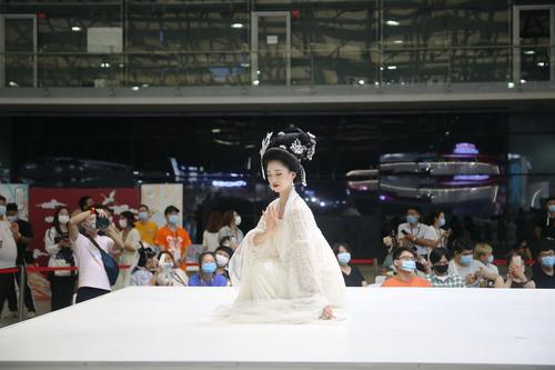 2021年7月30日,上海,汉服模特在ChinaJoy特设的T台走秀。