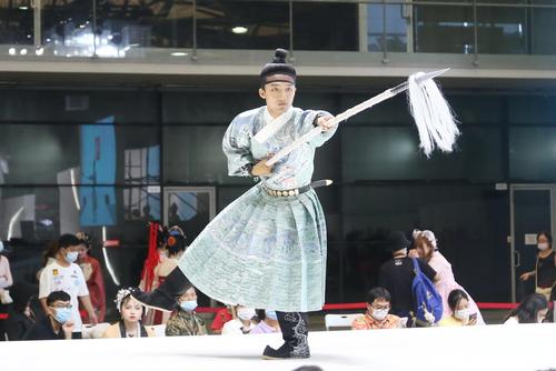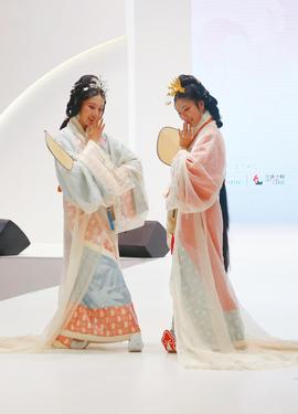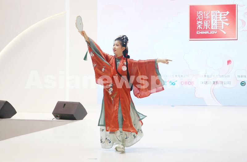 2021年7月30日,上海,ChinaJoy洛裳华服新秀大赛上汉服模特T台走秀,再现中华民族传统服饰(华服)和礼仪文化的时尚魅力。近年来中国符号、古风国风元素在文娱产业引起新的“国潮风韵”,也让热衷动漫游戏的二次元粉丝不再仅仅对洋装COSPLAY痴迷。