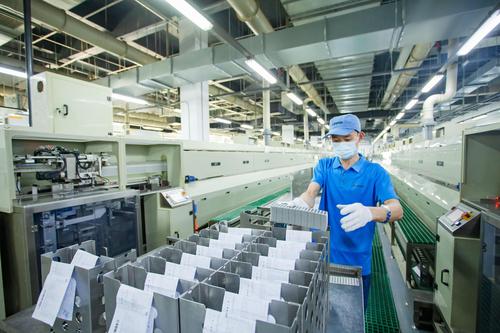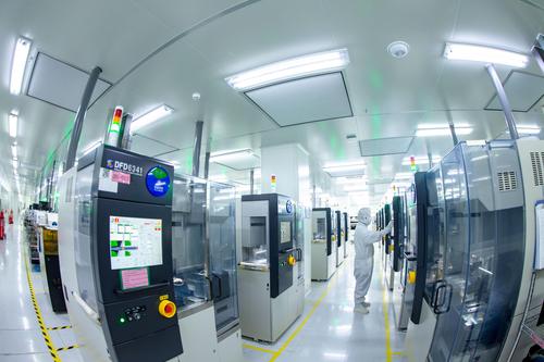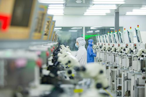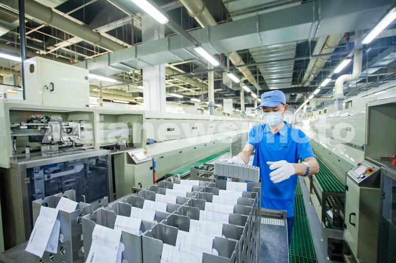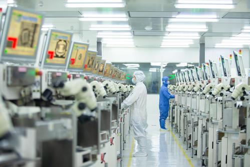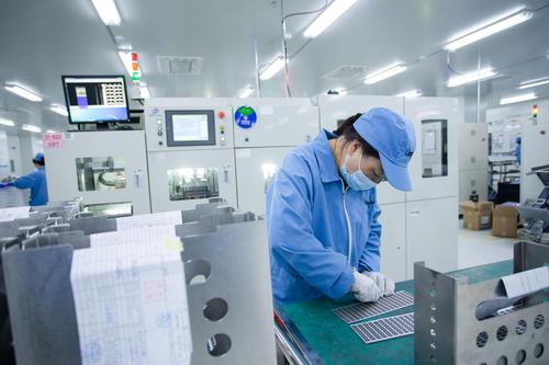 图片说明:2021年8月1日,四川省遂宁经开区利普芯微电子车间生产线上,工人在赶制订单。