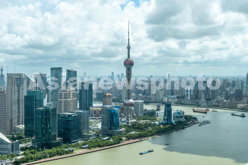 2021年8月5日,上海,当日午后,在北外滩来福士广场西塔55层俯瞰上海城区,陆家嘴、黄浦区外滩、虹口区等地的城市风景尽收眼底。