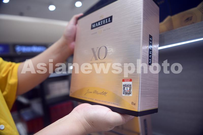 2021年8月6日,海南三亚,酒水上加贴的溯源码。